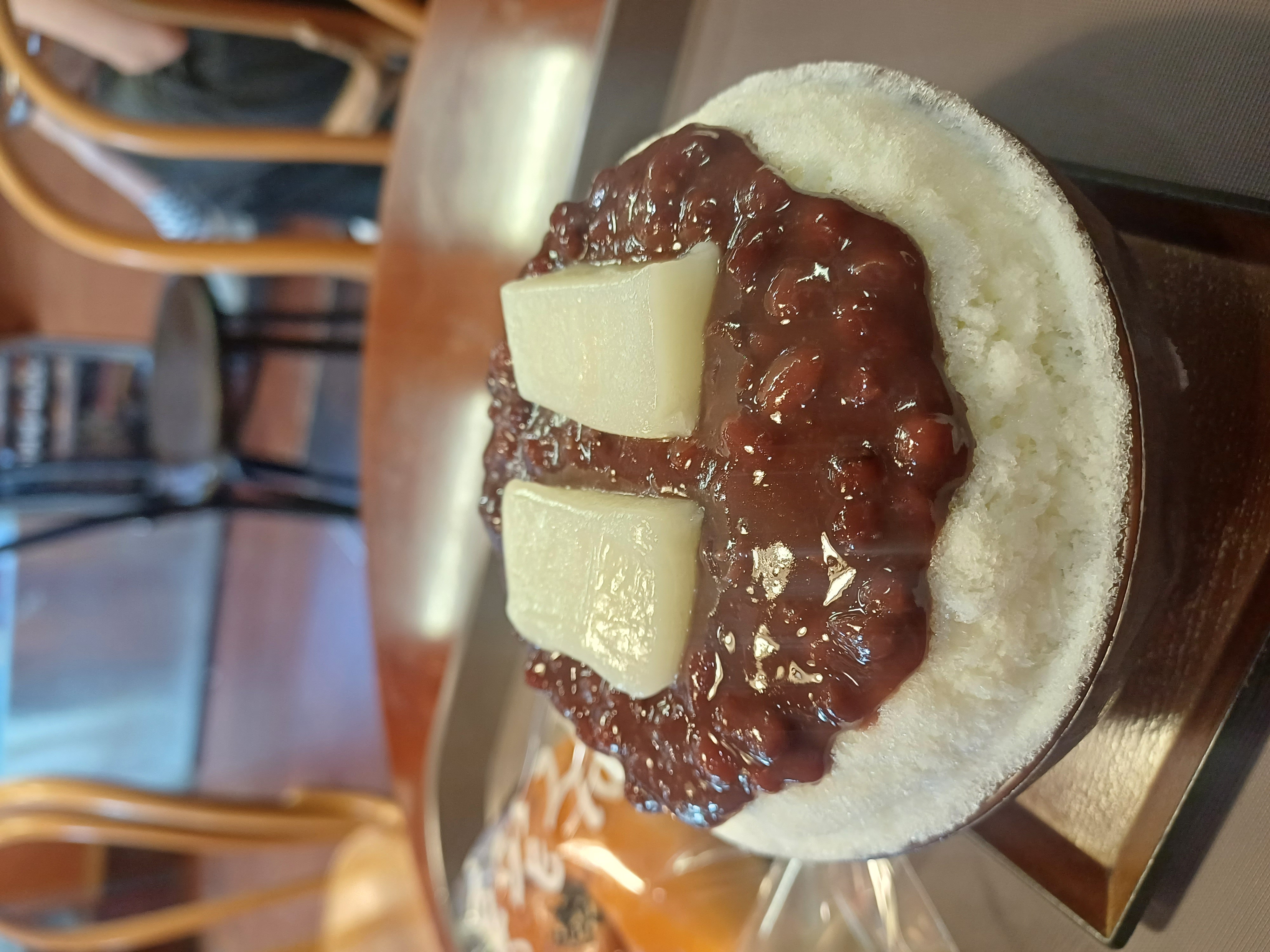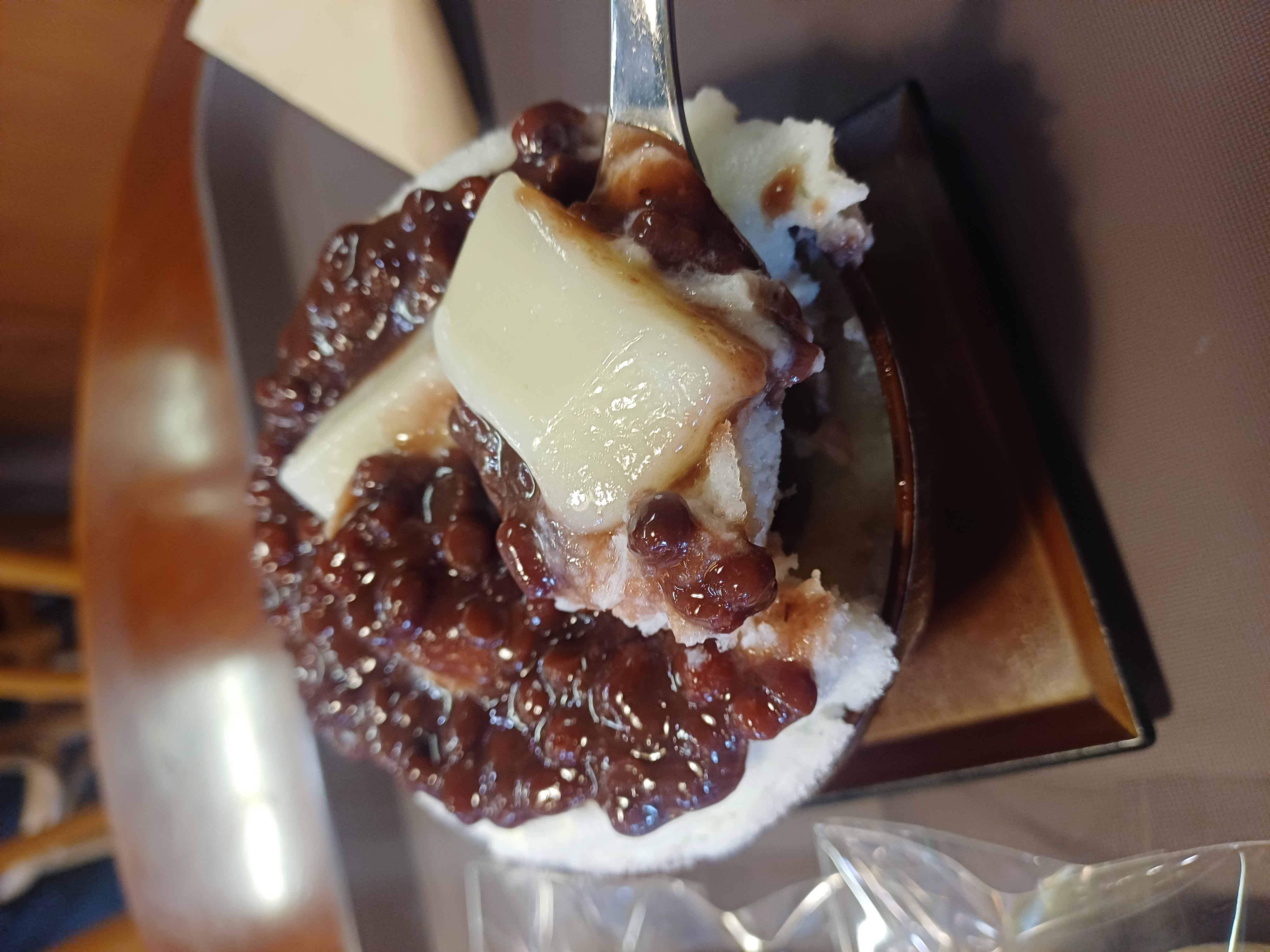 팥빙수와 한 입에 넣었을 때