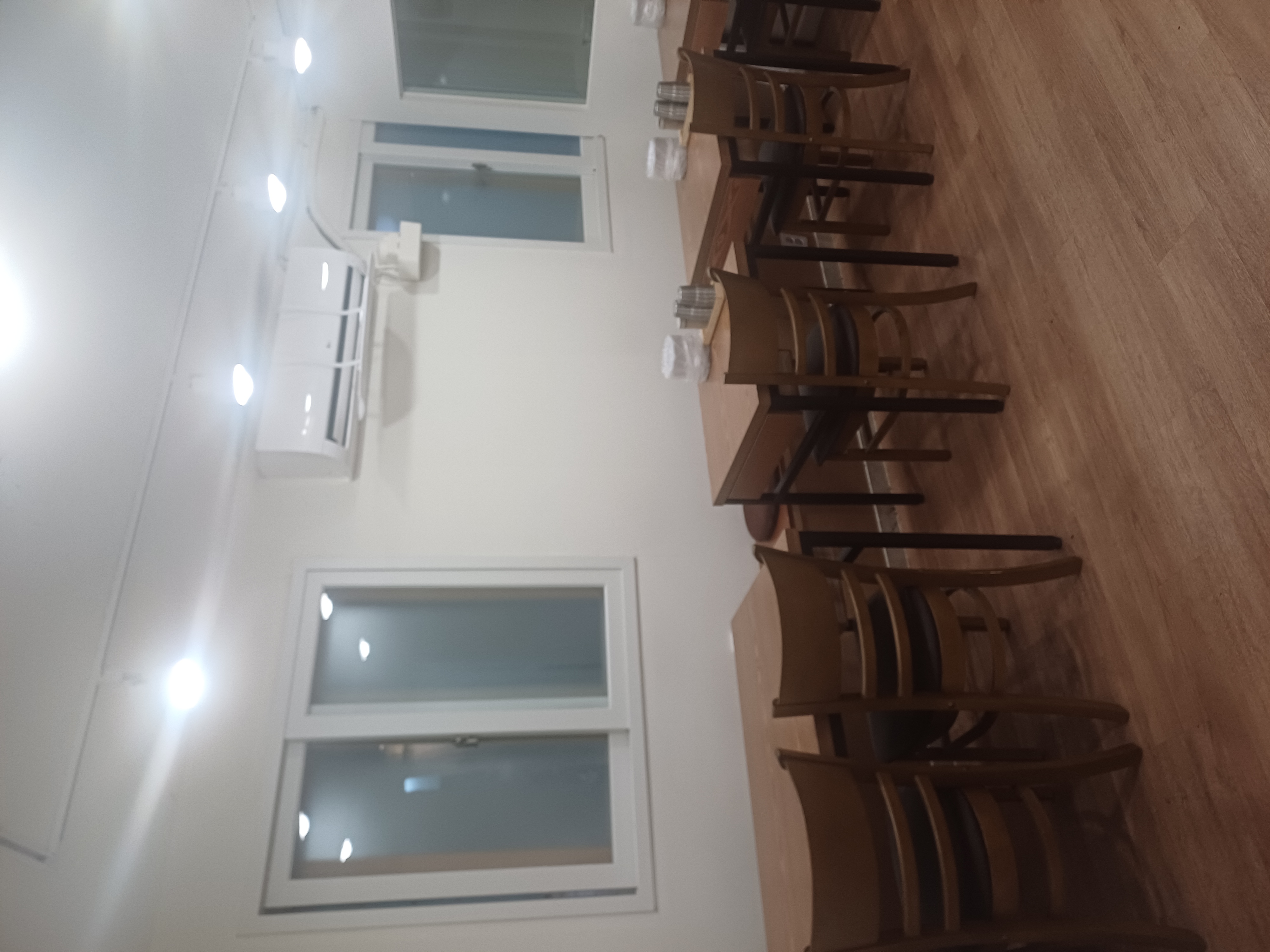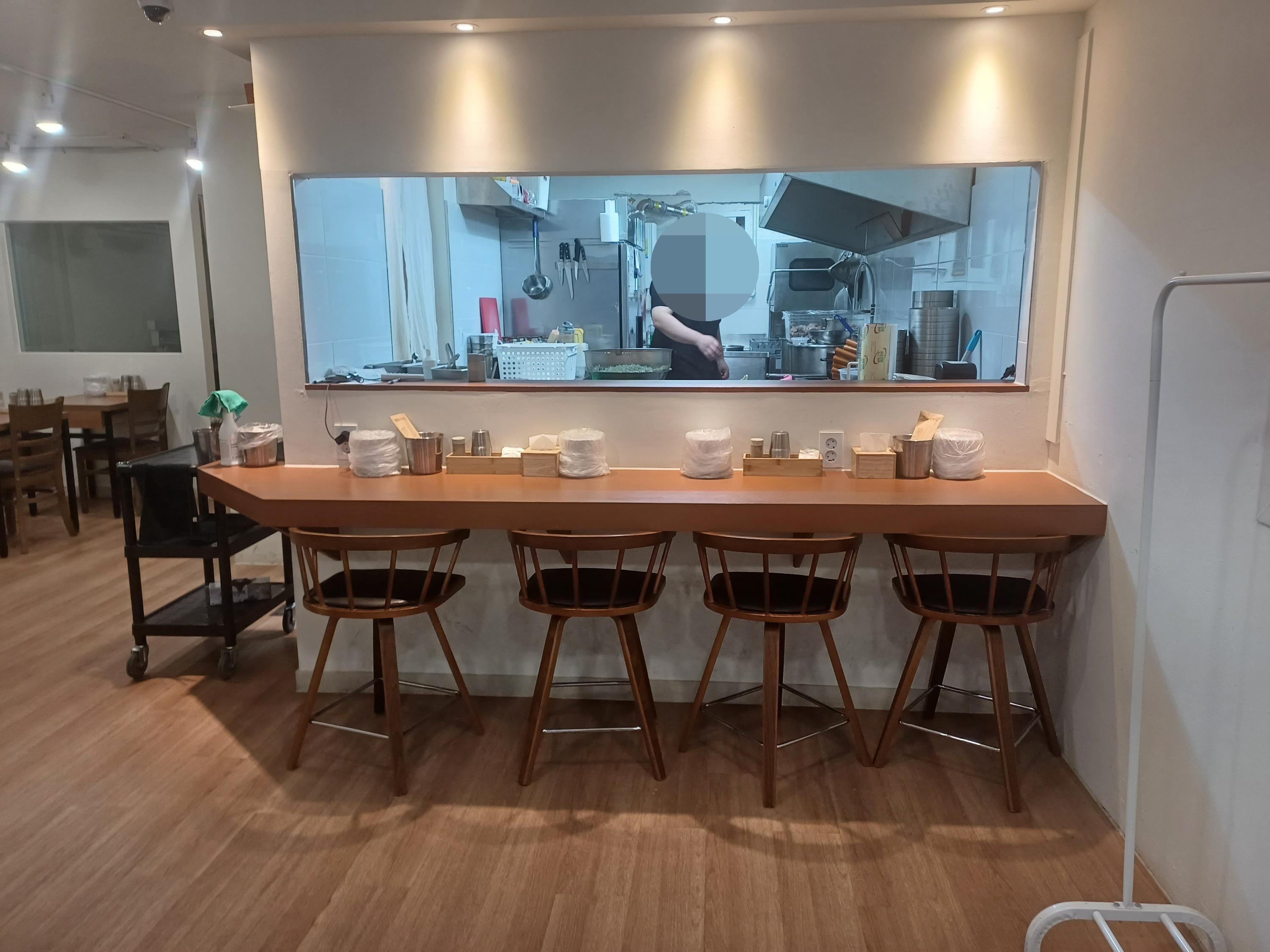 1인 좌석들과 테이블이