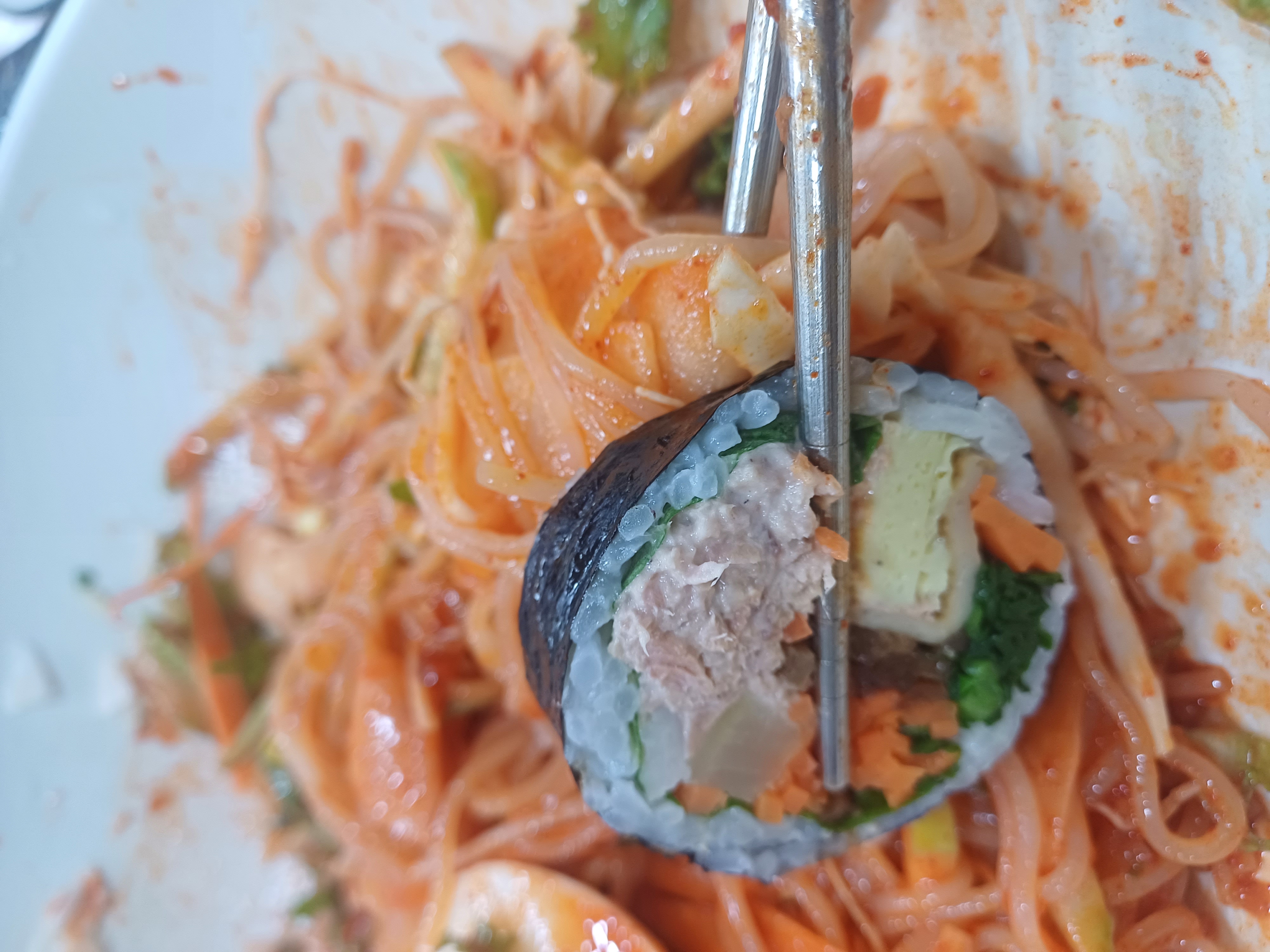 쫄면과 참치김밥